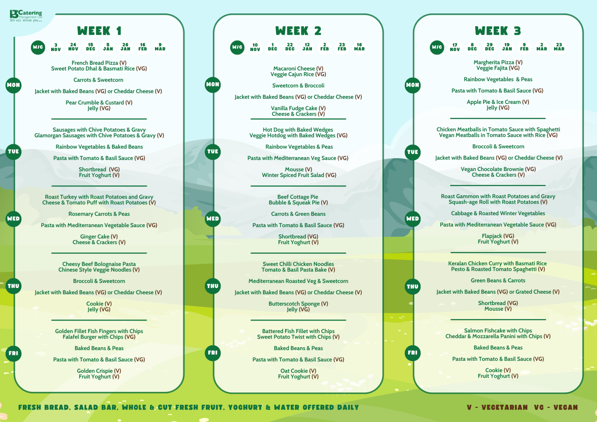 School meals are a great choice. However, if your child brings a packed lunch, we encourage healthy options. Please include fresh fruit and vegetables and avoid foods high in sugar or fat.